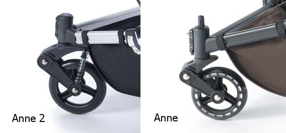 - Nuevo Sistema pulsadores reposapiés y funciones. Han mejorado los mandos o pulsadores para las diferentes funciones (extraer el chasis, dar la vuelta al manillar, regular la altura del manillar, reclinar la silla de paseo, activar el freno, quitar el asa, etc) haciéndolos más suaves y cómodos. Personalmente no recuerdo ningún problema al accionar los mandos en el Anne pero he estado trasteando los del Borsino Baby Anne 2 y van realmente bien.