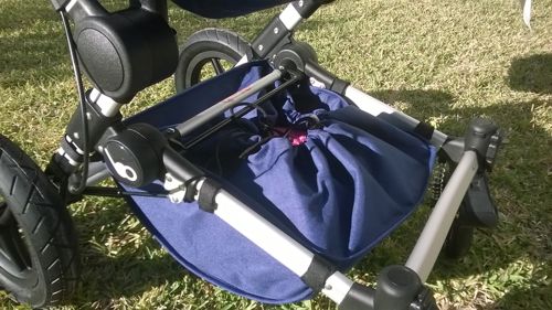 - Cesta inferior cerrada. Al principio no di importancia a esta mejora pero mi mujer me ha hecho ver que resulta bastante útil para que, con los baches o al subir escalones, no se caigan los utensilios del bebé que lleves en ella. El peso de la carga llega hasta los 4 kg que no está nada mal. En la foto he pretendido mostrar como queda cerrada.
