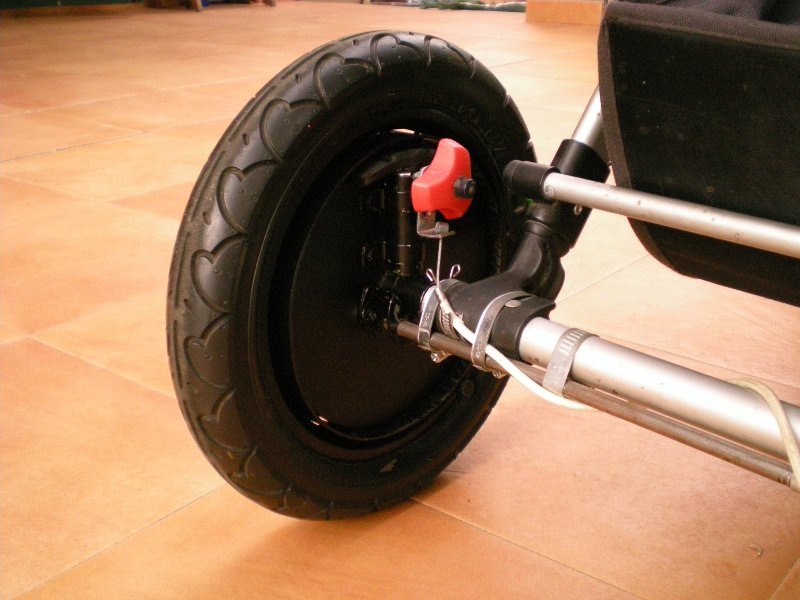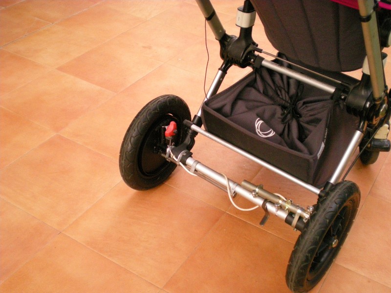Miguel: en un cochecito con el sistema incluido de fábrica, lo normal es que el cable vaya en el interior del chasis, que suelen ser tubos metálicos huecos; si no es así, tampoco tendría que suponer un problema: de hecho el Bugaboo en el que he instalado el prototipo no ha perdido ninguna de sus prestaciones: ni el plegado, ni el freno de estacionamiento ni ninguna otra.